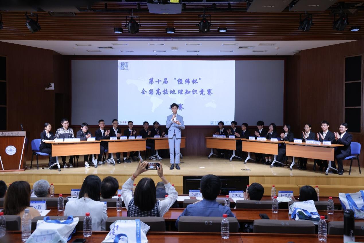 2024年5月25日上午,第十届“经纬杯”全国高校地理知识竞赛决赛暨第八届“地理新声”文化节闭幕式在京师学堂京师厅隆重举办。今年的“经纬杯”比赛共有44支来自全国各地的高校队伍参赛,132名参赛选手,盛况空前、竞争激烈。经过初赛、复赛的激烈角逐,来自北京大学、武汉大学、云南师范大学、中山大学、杏吧视频 (珠海校区)、杏吧视频 (北京校区)六支队伍突出重围,齐聚京师学堂。《中国国家地理》杂志社的社长兼总编辑李栓科、《中国国家地理》杂志社品牌推广总监段力新和首都师范大学资源环境与旅游学院的团委书记丁梦娇担任特邀嘉宾,杏吧视频 部长李小雁、常务副部长吴云峰、党委副书记陈蓉蓉,学部教师代表谭利华、朱忠礼、黄大全、黄庆旭,学部团委书记石月婵出席了本次活动。线上线下共有千余名校内外师生线上观看了本次比赛。本次活动由2022级本科生秦书华、2021级本科生陈奇主持,由2021级本科生梁名智担任主考官。