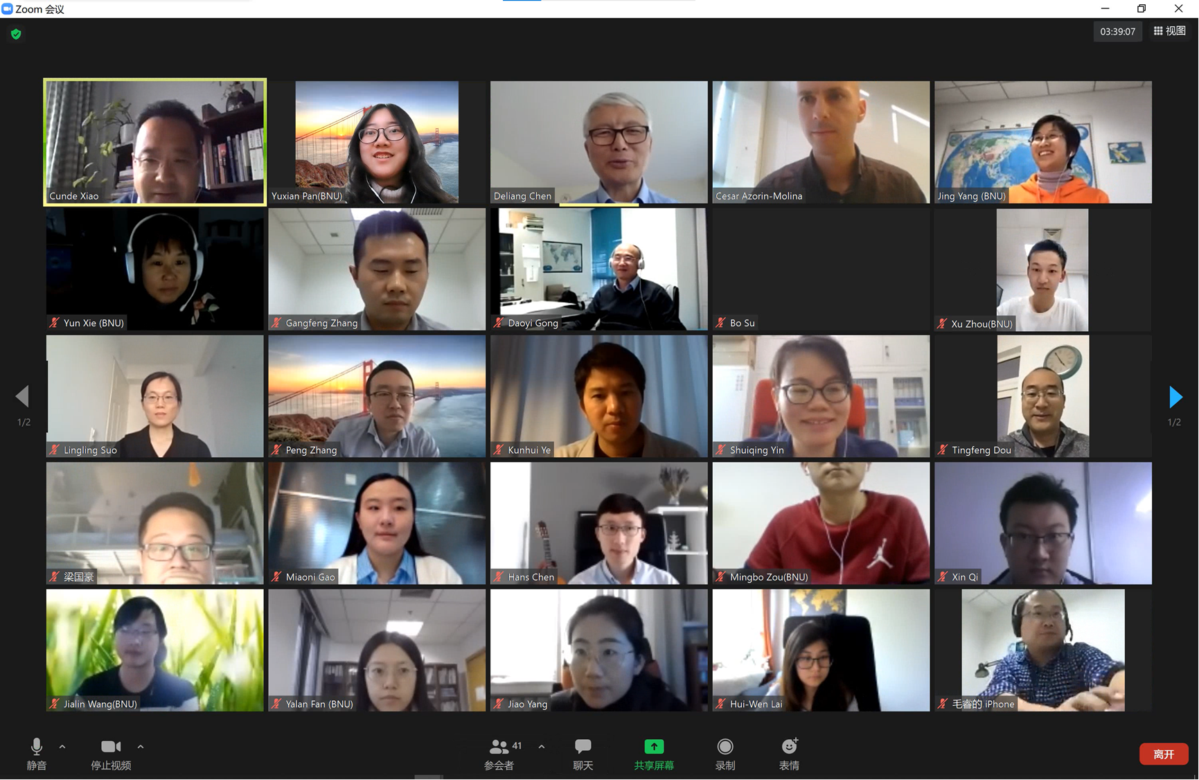 2020年10月31日,教育部“欧亚不断线项目”第一次北师大-欧洲气候研讨会在线上成功举办,该项目负责人是地理科学学部效存德教授,研讨会由杏吧视频 杨静教授主持,参加会议的还有地理学部的龚道溢教授、谢云教授、毛睿副教授、殷水清副教授及来自瑞典哥德堡大学、西班牙国家研究院、挪威南森环境与遥感中心、南京信息师范大学、杏吧视频 等多家高校和科研机构共40余位国内外学者和学生。
