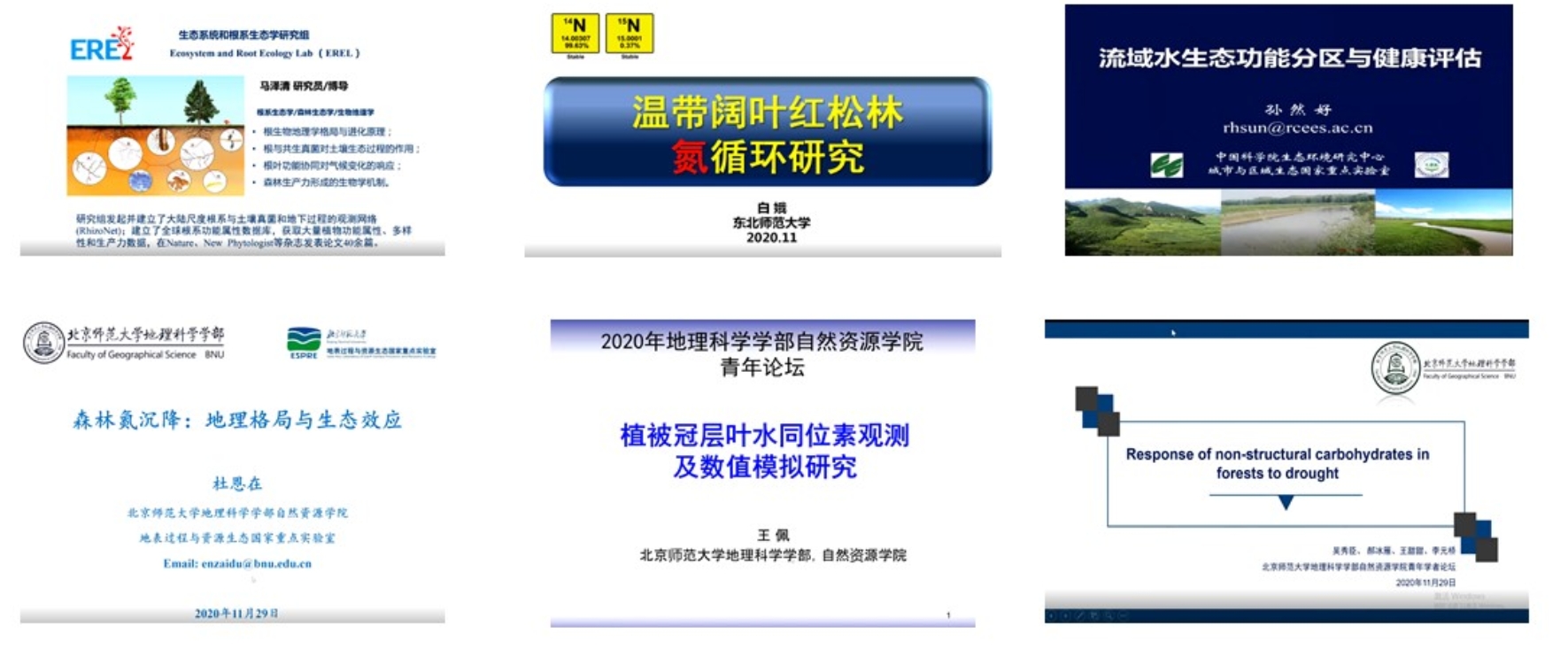 杏吧视频 自然资源学院2020年度青年学者论坛暨第四届研究生学术能力竞赛于2020年11月29日以线上形式成功举行,吸引了校内外80余人在线参加。上午的青年学者论坛开幕式由吴秀臣教授主持。首先,杏吧视频 自然资源学院院长李小雁教授致辞,介绍了自然资源学院优秀青年人才委员会的发展历程并对此次活动进行了寄语。青年学者论坛邀请到了中国科学院地理科学与资源研究所马泽清研究员,中国科学院生态环境研究中心孙然好研究员以及东北师范大学白娥教授等三位基金委优秀青年科学基金获得者作了特邀学术报告。三位专家分别以“植物根系生物地理格局及进化原理”、“流域水生态功能分区与健康评估”及“温带阔叶红松林氮循环研究”为题针对大尺度根系结构和功能的生物地理分布格局及控制机理、海河流域水生态功能分区及生态健康评估及典型温带阔叶红松林微生物残体氮循环过程作了精彩报告。同时,杏吧视频 自然资源学院杜恩在副教授、王佩副教授及吴秀臣教授分别以“森林氮沉降:格局与效应”、“植被冠层叶水同位素观测及数值模拟研究”和“森林非结构性碳动态对干旱的响应”为题与广大师生分享了最新的科研成果。与会师生就热点和前沿问题积极参与讨论,现场气氛热烈。