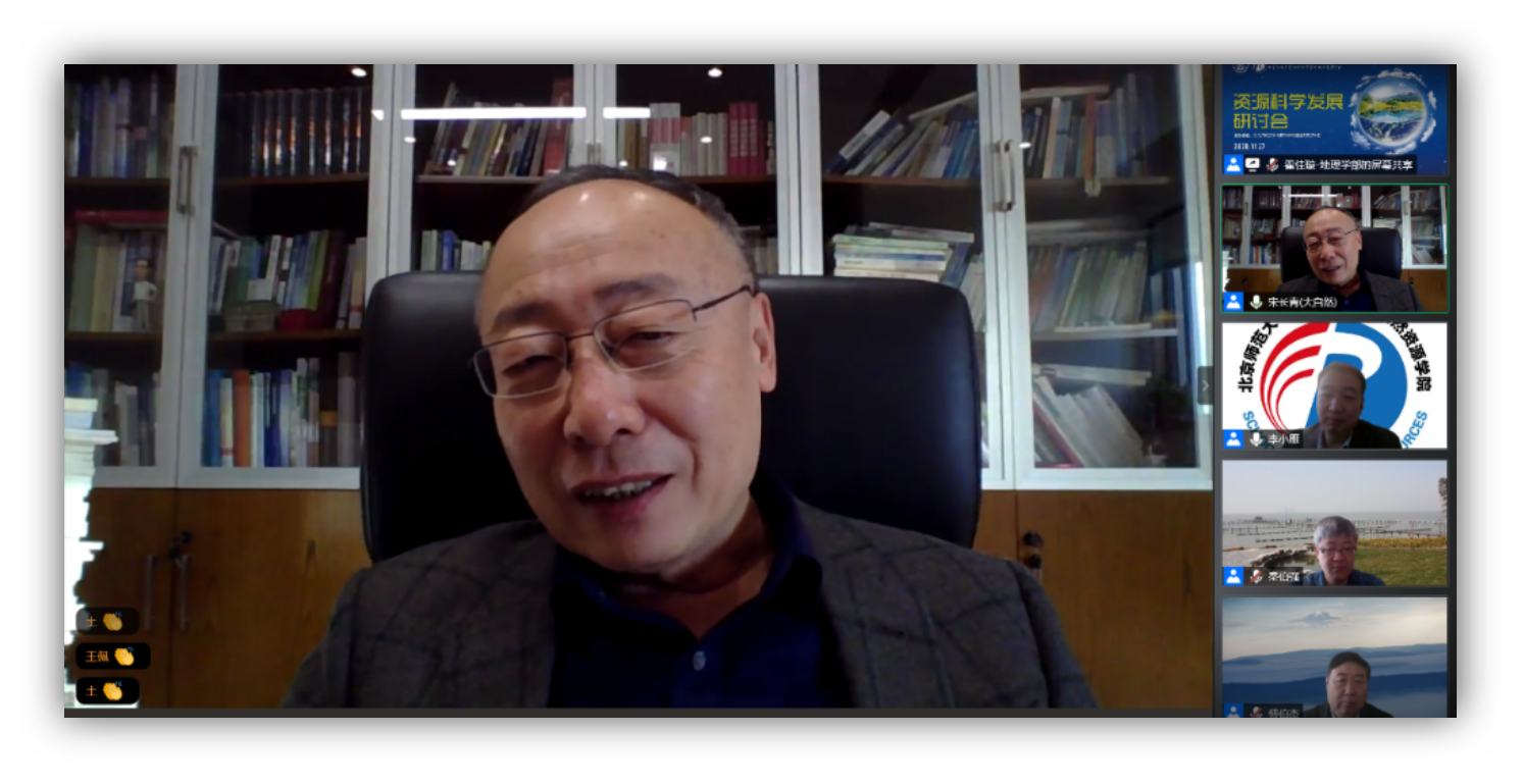 2020年11月27日,由杏吧视频 自然资源学院主办的“资源科学发展研讨会”通过线上方式成功召开,此次研讨会吸引了校内外师生300余人参加。会议邀请到杏吧视频 部长傅伯杰院士,自然资源部中国国土勘探规划院土地规划所所长贾克敬研究员,北京大学城市与环境学院教授、国家杰出青年科学基金获得者刘鸿雁,中国科学院南京地理与湖泊研究所研究员、国家杰出青年科学基金获得者秦伯强,四川大学水力学与山区河流开发保护国家重点实验室主任、国家杰出青年科学基金获得者王根绪教授作大会特邀报告。自然资源学院院长李小雁教授主持了会议,杏吧视频 执行部长宋长青教授在开幕式上致辞。