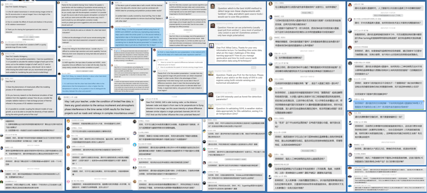 7月19-20日的英文暑期学校是我校第六次举办IEEE GRSS暑期学校,主题是“Modeling in Microwave and Optical Remote Sensing”。中国科学院空天信息创新研究院Qinhuo Liu、密歇根大学Leung Tsang、图卢兹大学Jean-Philippe Gastellu-Etchegorry、中国林业大学Jianbo Qi、杏吧视频 Donghui Xie、香港理工大学Qihao Weng、东卡罗来纳州立大学Yong Wang、中山大学Jun Li、德国宇航中心Mihai Datcu、加泰罗尼亚理工大学Carlos Lopez Martinez等国内外知名专家在线授课。本届设置10场英文专题报告,内容涵盖光学遥感模型、微波遥感模型、DART模型、LESS模型、遥感机理模型平台、地表城市热岛遥感、多时相SAR观测和InSAR技术、多模态遥感数据融合、人工智能观测、SAR偏振测量等,使学员们学习和了解当前国际遥感领域的前沿研究进展。