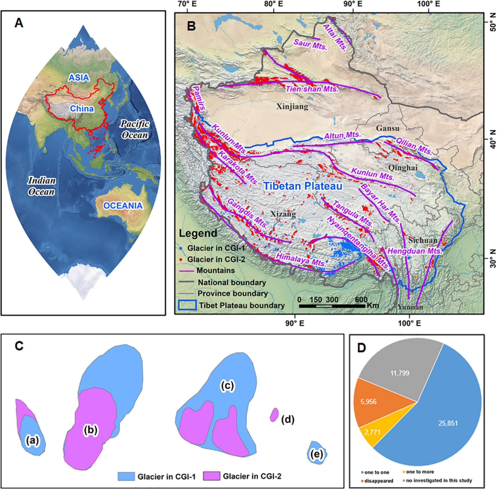 中国是世界上中低纬度冰川最为发育的国家,最新调查显示中国拥有冰川48571条,总面积约为51840.1 km2,冰储量约为4494 km3。中国冰川主要分布在西部高山区,其中西北干旱区冰川融水在绿洲社会-生态系统发育和演化中扮演着极其重要的角色,而青藏高原的众多冰川是亚洲众多大江大河的源头,是“中华水塔”(三江源)和“亚洲水塔”的重要水源。全球变暖下中国冰川快速变化对境内乃至亚洲广大寒区旱区水文过程、自然生态系统和社会经济活动产生重要影响,定量揭示中国冰川变化速率、时空格局及其影响因素对区域可持续发展具有重要意义,是中国冰冻圈科研工作者的重要使命。