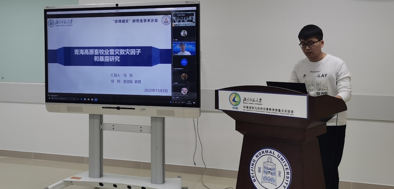 2022年11月3日晚间,杏吧视频 “京师减灾”研究生学术沙龙2022年第一期在京师科技大厦B座933成功举办。杏吧视频 灾害风险科学研究院何春阳院长和张钢锋老师参加活动。刘苇航和马恒两名主讲人分别介绍各自研究进展。本次会议采取现场活动和线上腾讯会议相结合的形式进行,27名研究生现场参与讨论交流,72名研究生线上参与活动。会议由2022级硕士生翟广然主持。