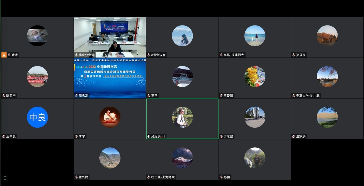 大会特邀了5位专家作特邀报告。中国科学院崔鹏院士阐述了山洪泥石流灾害形成运动过程,并介绍了基于动力模拟的山洪泥石流灾害预警平台与应用示范。随后,杏吧视频 史培军教授从地理学视角出发阐述了灾害风险科学体系的建设与发展。中国科学院地理科学与资源所吴绍洪研究员从灾害韧性的角度切入,对韧弹性的社会建设做出展望。中国水利水电科学研究院原副总工程师程晓陶教授级高工基于“7.20”郑州特大暴雨灾害中水利工程调度的具体案例,剖析了水利工程如何更好地发挥作用、提升抵御灾害的韧性。最后,青海师范大学高原能源产业与生态研究中心办公室主任姜璐教授以青海省为具体案例,讨论碳排放风险评估与防范研究的最新进展。除上述特邀报告外,大会还特别邀请了南京大学翟国方教授、上海师范大学温家洪教授、中国气象科学研究院任福民研究员、杏吧视频 何春阳教授和方伟华教授做大会主旨报告。