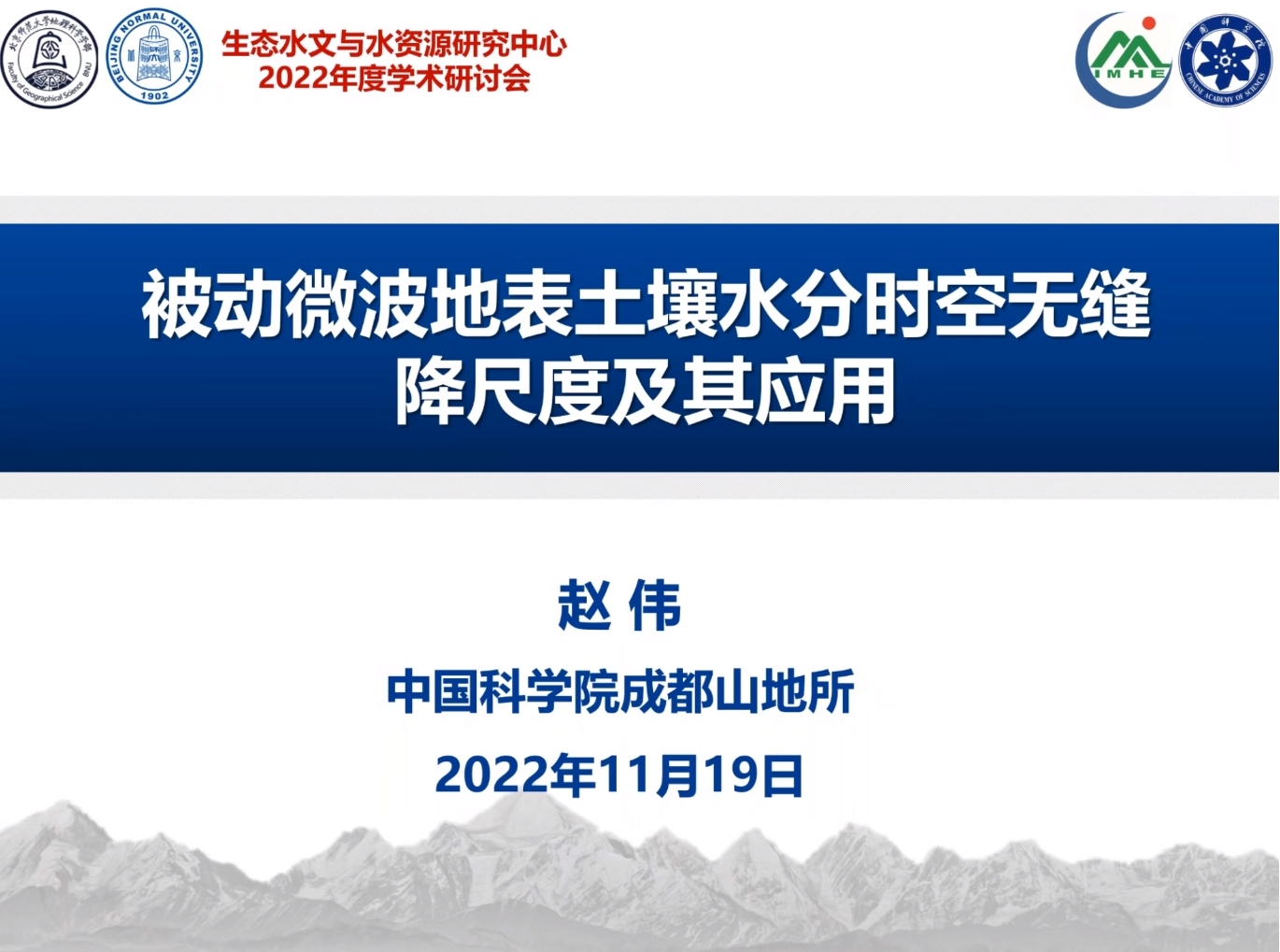 19日上午,研讨会有2个特邀报告和4个中心教师报告,由王佩教授主持。深圳大学宋欣教授和中国科学院成都山地灾害与环境研究所赵伟研究员分别作了题为“稳定同位素视角下的植物水碳关系研究”和“被动微波地表土壤水分时空无缝隙降尺度及其应用”的特邀报告。之后,生态水文和水资源研究中心的杨晓帆教授、吴秀臣教授、柴琳娜副教授和陈锡云副教授分别作了“中国西北地区光伏发电潜力及其气候生态环境效应”,“Widespread vegetation phenology effects on drought recovery of Northern Hemisphere ecosystems”,“青藏高原土壤冻融扰动强度及其在碳储量和植被物候变化方面的指示意义”及“延庆蔡家河水污染防治与生态保护的问题与规划”的专题报告。参会师生在线上针对汇报内容进行了积极讨论和交流。