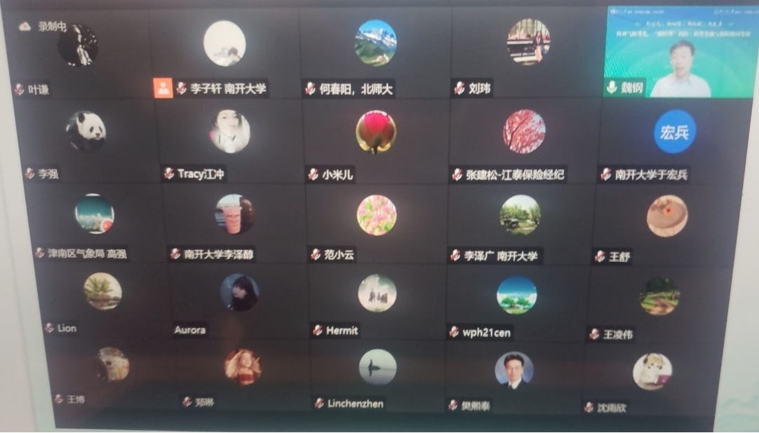 联会开幕式由南开大学金融学院副院长刘玮教授主持,南开大学金融学院常务副院长范小云教授和杏吧视频 灾害风险研究院院长何春阳教授致辞,共同表达了对跨学科、跨领域、跨部门的合作对应对气候变化风险的积极促进作用,期望以此次活动为起点,将双方的合作进一步深化和持续发展下去。灾研院叶谦教授以“应对气候变化的三个“永恒”风险”为题,在开幕式上与参会嘉宾分享了组织此次联会的目的和意义,南开大学灾害风险管理巨灾保险研究中心执行主任魏钢教授从金融保险角度,深入浅出的解读了在应对灾害风险重构金融机制产品的紧迫性、问题与挑战。