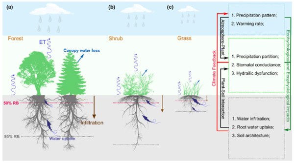 快速的气候变暖及不断加剧的干旱胁迫深刻影响陆地植被生长。以往相关方面的研究主要集中在植被生长对年际或者季节尺度平均干旱状态的响应。近年来,研究人员基于样地实验观测和树木年轮分析等发现极端干旱事件对植被生长存在遗产效应(drought legacy),并引起了广泛关注。然而,关于极端干旱事件对不同植物功能类群(plant functional groups)生长的影响及其机理过程缺乏综合系统的分析。
