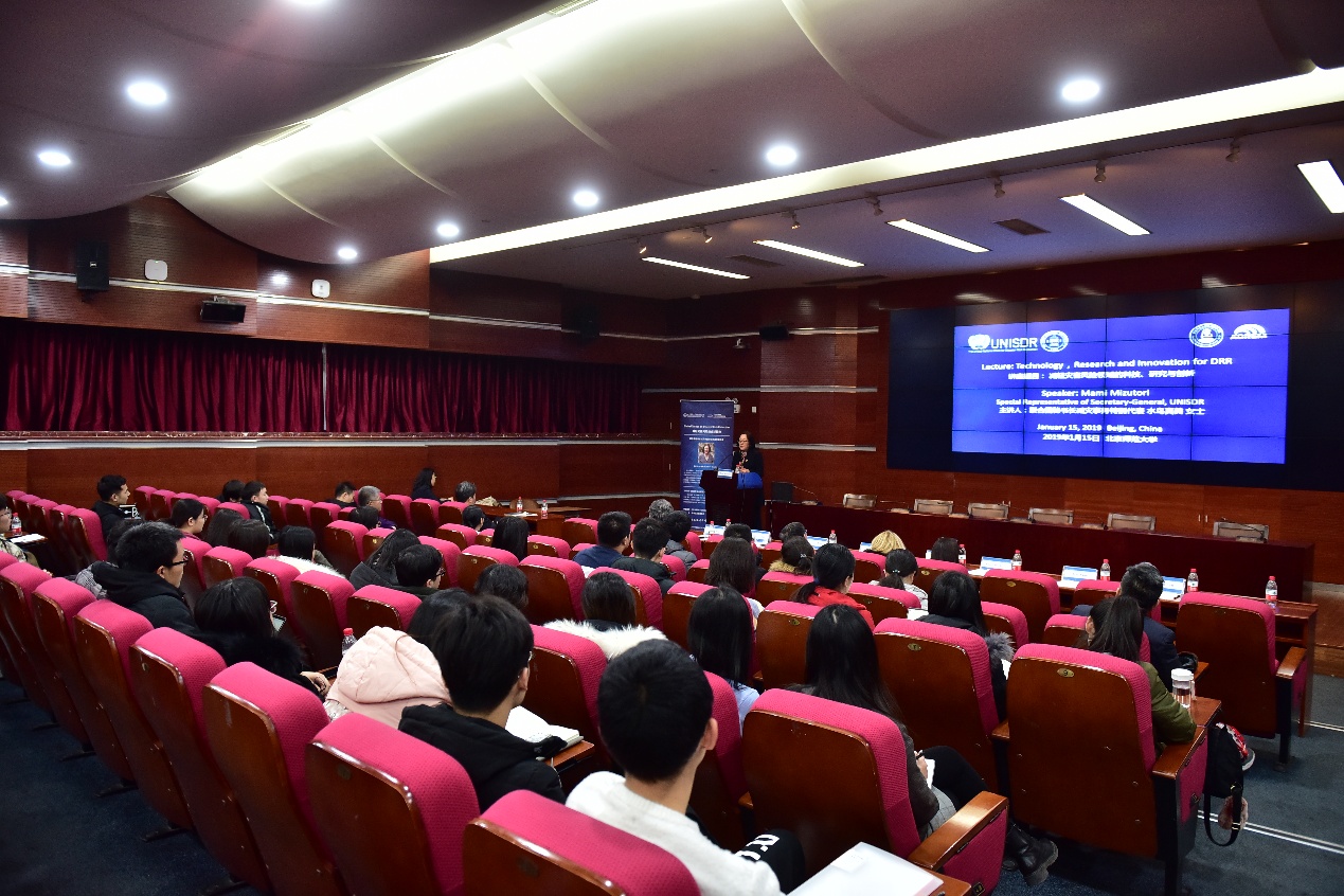 1月15日,联合国减灾办公室(United Nations Office for Disaster Risk Reduction, UNISDR)主任、联合国秘书长特别代表 (Special Representative of the Secretary-General, SRSG)水鸟真美(Mami Mizutori)女士、UNISDR亚太办主任Loretta Hieber-Girardet女士以及UNISDR项目官员Ana Thorlund女士一行来访我校。