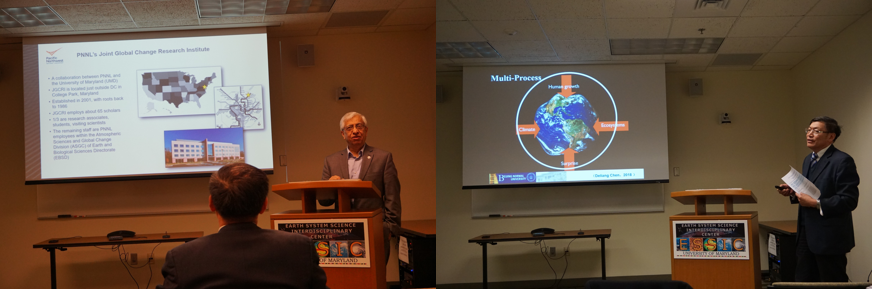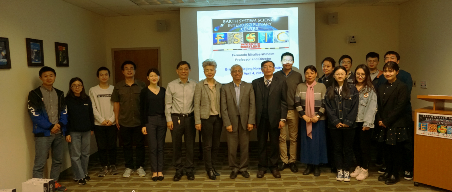 4月4日,项目代表团一行来到马里兰大学地球系统交叉学科研究中心(ESSIC,Earth System Science Interdisciplinary Center)。中心主任Fernando Miralles-Wilhelm教授,JGCRI主任Ghassem Asrar教授热情地接待了代表团的到来。Miralles-Wilhelm教授首先介绍了ESSIC的基本情况与主要研究任务。Ghassem Asrar教授相应介绍了JGCRI的基本情况与研究关注点。随后,双方分别进行了学术报告。项目办协调人叶涛教授首先介绍了项目的总体进展。随后,中科院大气物理所孔祥慧博士、杏吧视频 高原博士、杨赛霓教授和叶涛教授分别代表项目的四个课题,就项目在未来气候预估的模式比较、未来全球农作物暴露度和脆弱性预估、全球变化基础设施风险评估的模式以及热点区青藏高原全球变化风险评估等的进展做了学术报告。JGCRI主任Ghassem Asrar教授和研究员Sha Yu博士就目前中心在全球变化评估模型(GCAM)的开发,特别是在中国区的区域模型研制,在未来能源安全、粮食安全、水资源利用等方面与中国机构开展的合作进行了介绍。在此过程中,还特别谈到了与中国机构在学生交流培养方面创造的条件。在讨论阶段,项目负责人史培军教授首先就他对当前全球变化风险研究的热点问题,特别是增暖引起的环境问题、城市化,以及综合风险防范的凝聚力模型等进行了介绍。Ghassem Asrar教授进行了热烈地回应,并相应地谈到了JGCRI在近期参加IPCC评估报告以及UNEP出版的Global Environment Outlook中的工作。双方还就进一步开展合作研究、学生联合培养等问题进一步交换了意见。