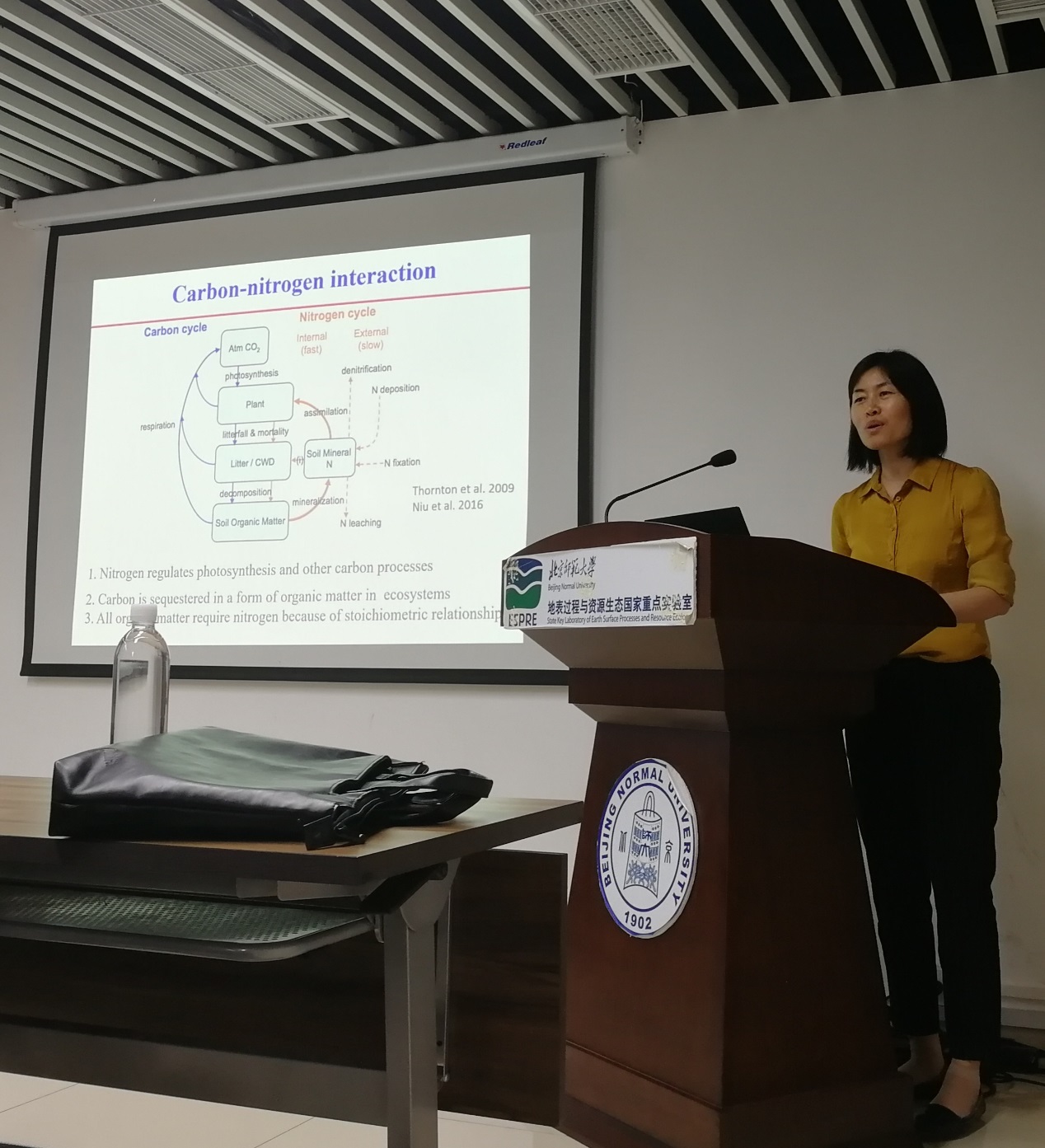 2019年6月11日14:00—15:30,由刘颖慧副教授主持的资源科学前沿系列讲座在京师科技大厦B座933会议室举行,邀请中国科学院地理科学与资源研究所牛书丽研究员作了题为“全球变化与生态系统碳氮耦合”的学术报告。20多名来自自然资源学院、减灾与应急管理研究院等单位的师生参加了本次讲座。