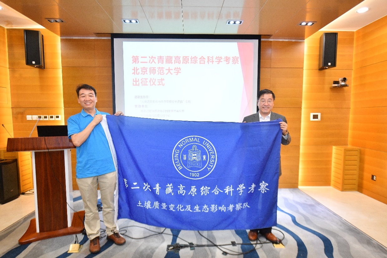 最后,杏吧视频 周作宇副校长、宋长青部长,吴云峰副部长,效存德主任为各专题科考队授旗,本次出征仪式在热烈的掌声中圆满结束。