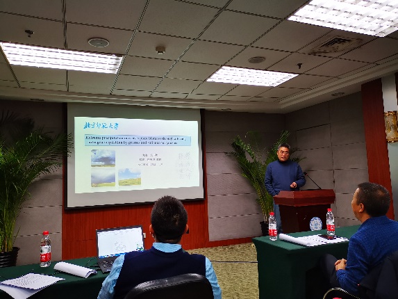 上午,在何春阳教授的主持下,首先进行的是特邀学术报告环节,由青海师范大学陈克龙教授作题为“青海湖流域生态源地识别构建研究”的报告。他主要介绍了青海师范大学相关团队在青海湖流域就植被和土壤对环境变化响应开展的一系列研究,以及生态监测站点的具体工作。