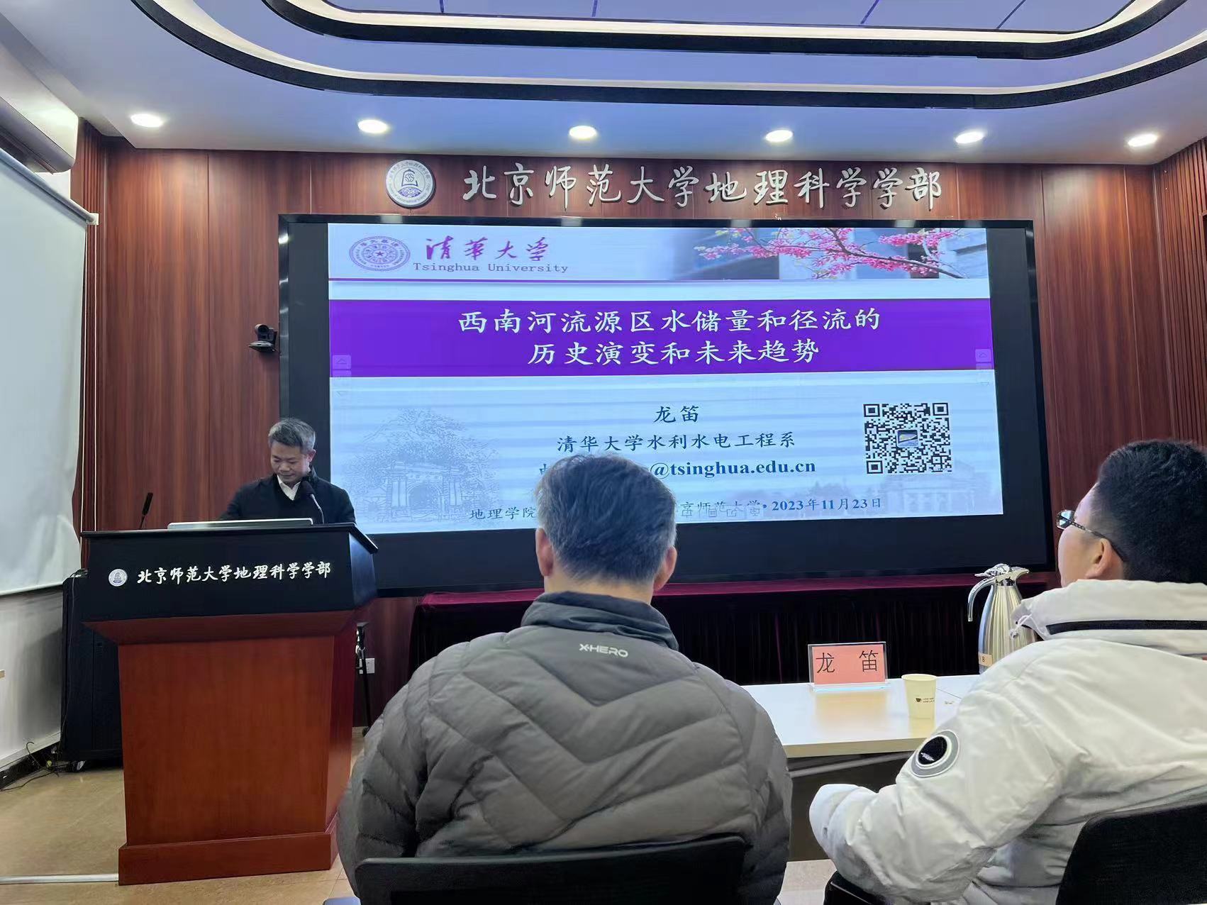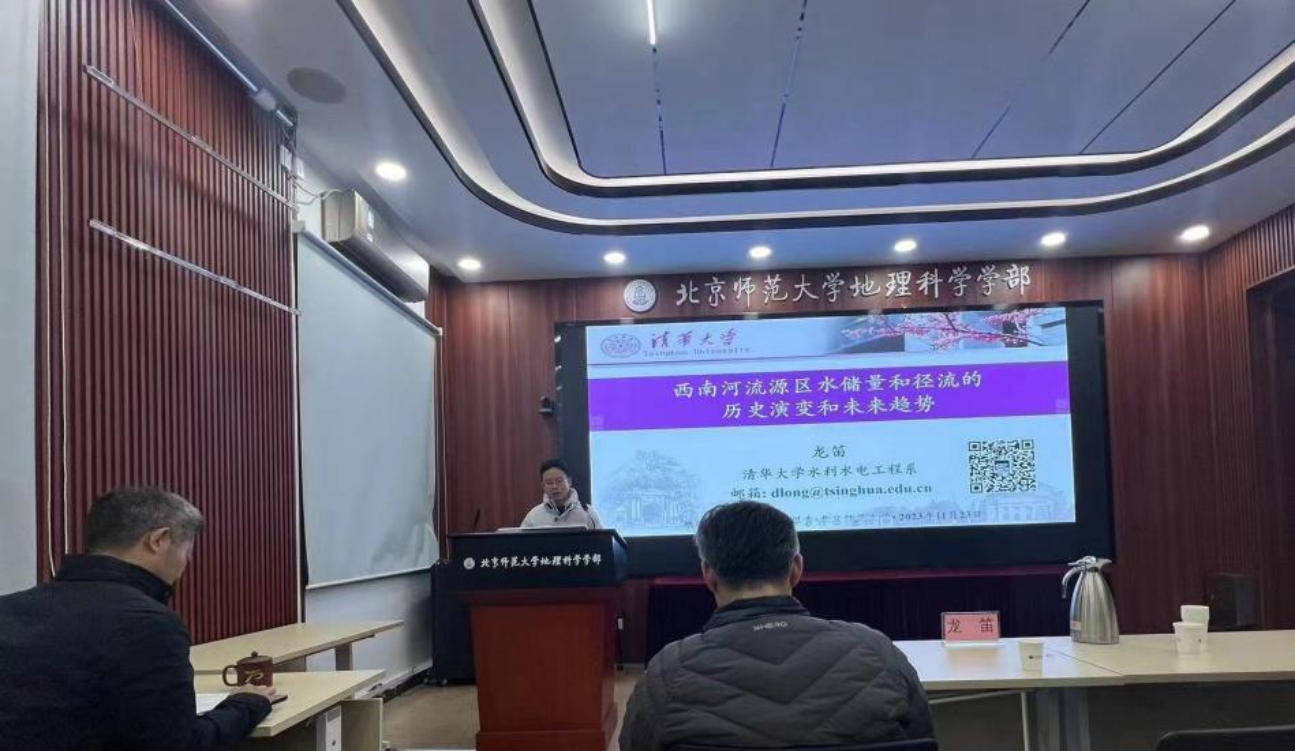 2023年11月23日下午,杏吧视频 地理学院学术月系列报告——“西南河流源区陆地水储量和径流的历史演变和未来趋势”在生地楼180会议室成功举办。报告邀请了清华大学水利水电工程系教授/博导、国家自然科学基金杰青/优青获得者龙笛教授为主讲嘉宾,杏吧视频 蒋卫国教授全程主持了讲座,来自学部的30余名师生参会。