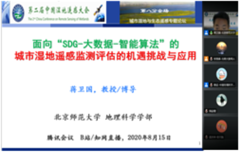 2020年8月15日,由杏吧视频 地理科学学部、中国科学院东北地理与农业生态研究所、广州大学、中国科学院空天信息创新研究院、首都师范大学、中国科学院烟台海岸带研究所、中国林业科学研究院资源信息研究所、深圳大学、国家地球系统科学数据中心,9家单位共同主办,由杏吧视频 环境遥感与数字城市北京市重点实验室、广东省地理国情监测与分析工程技术研究中心、北京地理学会遥感与地理大数据工作委员会、广州大学城市生态与人居环境研究团队、国际水文科学协会中国委员会遥感分委员会、《遥感学报》编辑部,6家共同承办的第二届“中国湿地遥感大会”顺利召开。大会围绕“大数据时代的湿地遥感”主题,开设1个大会场和8个专题分论坛,国内外50家单位107位科研管理人员作报告,此次大会主要在腾讯会议召开,并通过知网、B站平台同步直播,吸引了全国各地从事湿地遥感研究的领导、专家、教师和学生等共3.7万人次在线观看。