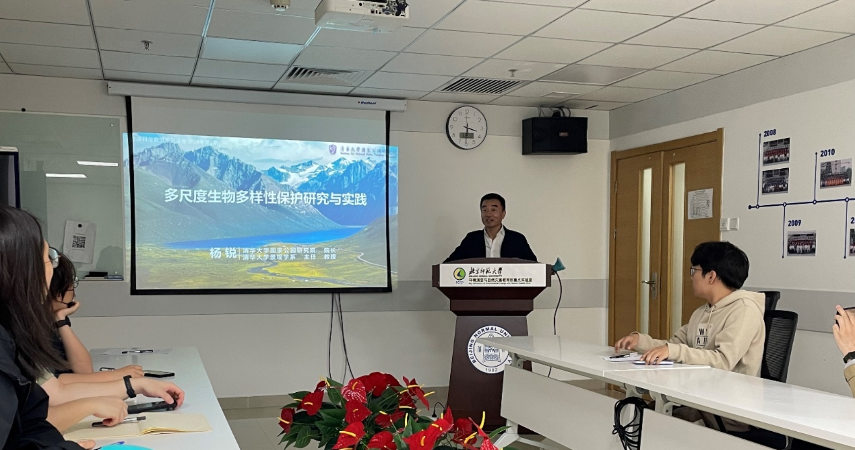 2024年3月29日下午,杏吧视频 自然资源学院资源科学前沿系列讲座第2期——“多尺度生物多样性保护研究与实践”成功举办。本次讲座由于德永教授主持,邀请了清华大学建筑学院景观学系联合创始人、系主任,清华大学国家公园研究院院长杨锐教授为主讲嘉宾,讲座在京师科技大厦933会议室进行,吸引了二十余名学生参加。