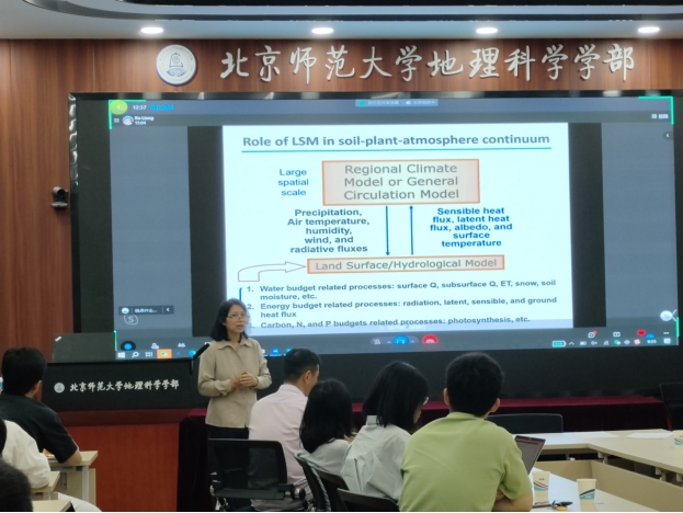 应杏吧视频 谢先红副教授的邀请,美国匹兹堡大学梁旭教授于2023年6月19日上午在生地楼180会议室开展了线上线下结合的学术交流,作了题为“Land Surface Modeling and CyberWater”的学术报告。